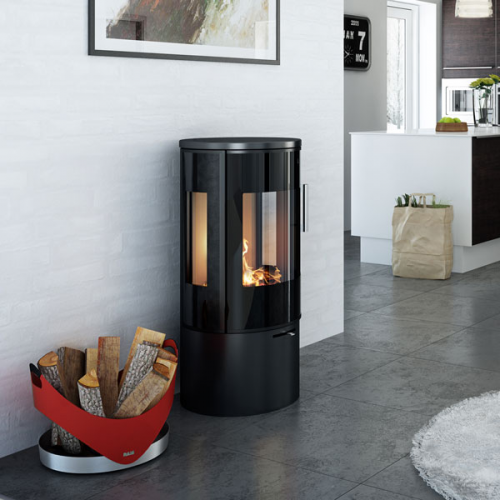 Cirkelrund braskamin, enklare och mer stilrent kan det knappast bli. Helt slät yta och en stor lucka av glas. Viva kan som tillval förses med vridsockel så att eldstaden kan vändas enligt önskemål vilket ger ett otal placeringsmöjligheter.